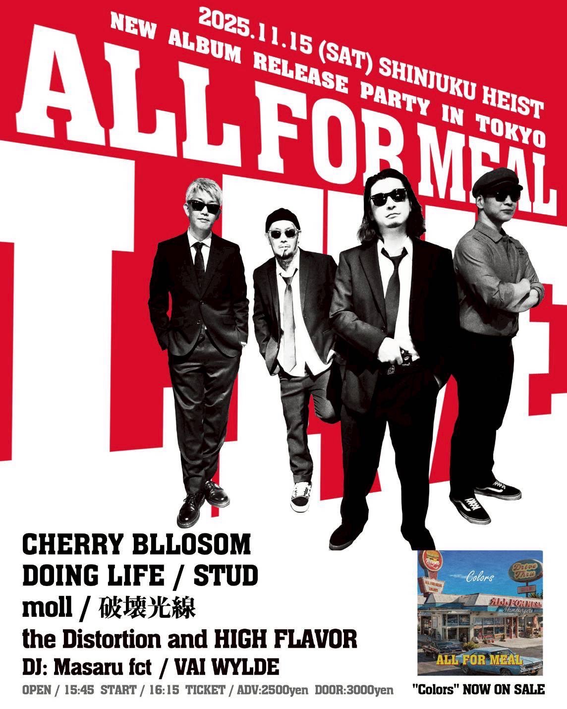 <LIVE> ALL FOR MEAL CHERRY BLLOSOM DOING LIFE STUD moll 破壊光線 the Distortion and HIGH FLAVOR <DJ> Masaru fct VAI WYLDE |