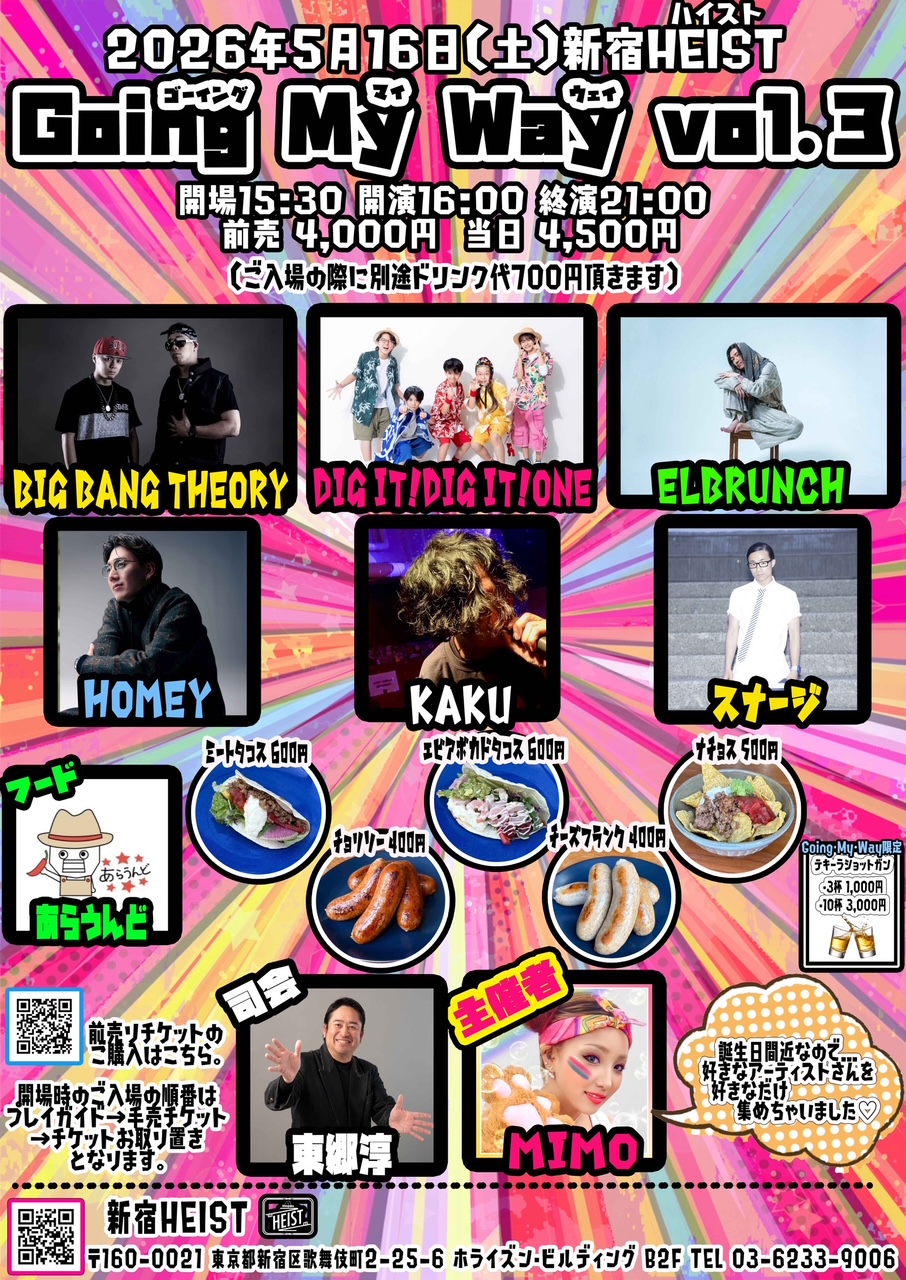 【Live】 ELBRUNCH DIG IT!DIG IT!ONE スナージ KAKU BIG BANG THEORY HOMEY MIMO 【MC】 東郷淳 【フード】 あらうんど |