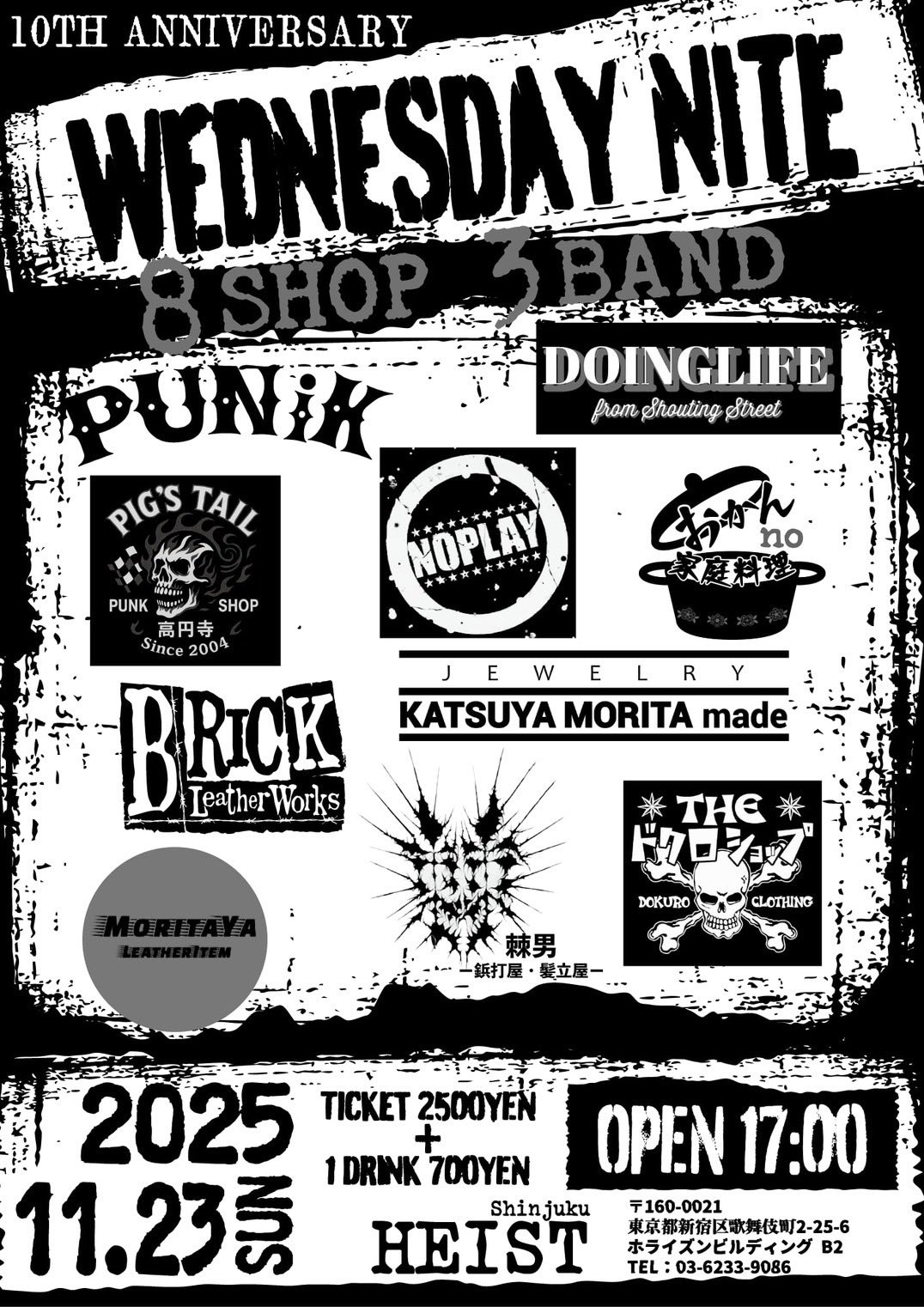 --BAND-- DOINGLIFE PUNiK NOPLAY --SHOP-- PIG'S TAIL(高円寺PUNK SHOP) THE ドクロショップ(高円寺) KATSUYA MORITA made(JEWELRY FROM富山) 守田屋(leather item) 棘男(鋲打屋・髪立屋) BRICK(Leather Works) おかんの家庭料理(FOOD) WEDNESDAY(PUNK SHOP) |